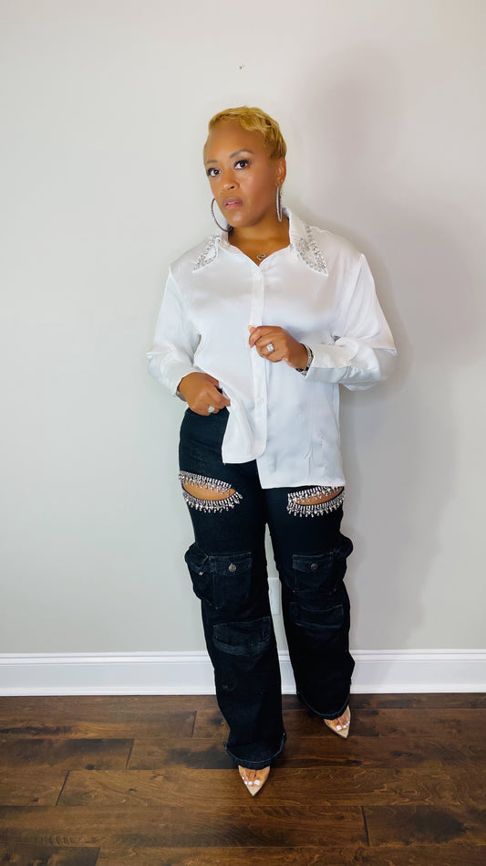 Satin Shirt with Rhinestone Collar