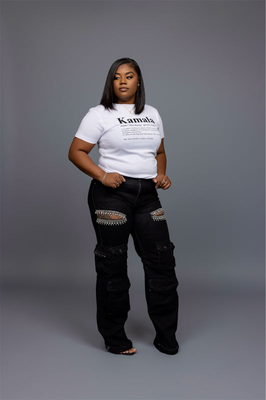 Rhinestone Embellished Cargo Jeans