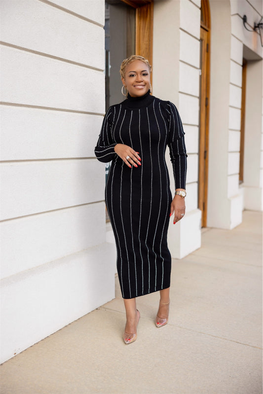 Black Sweater Dress with Embellishments