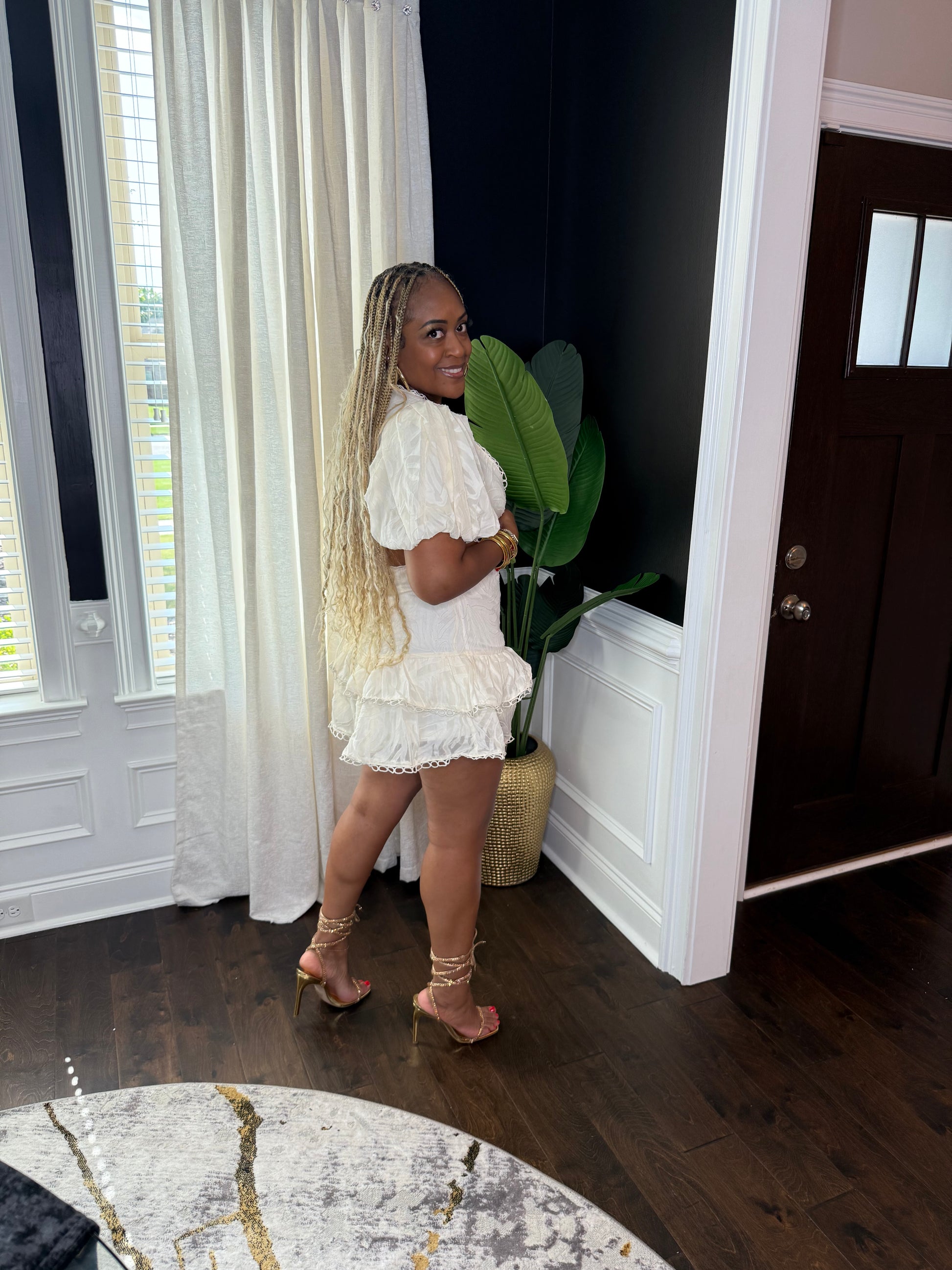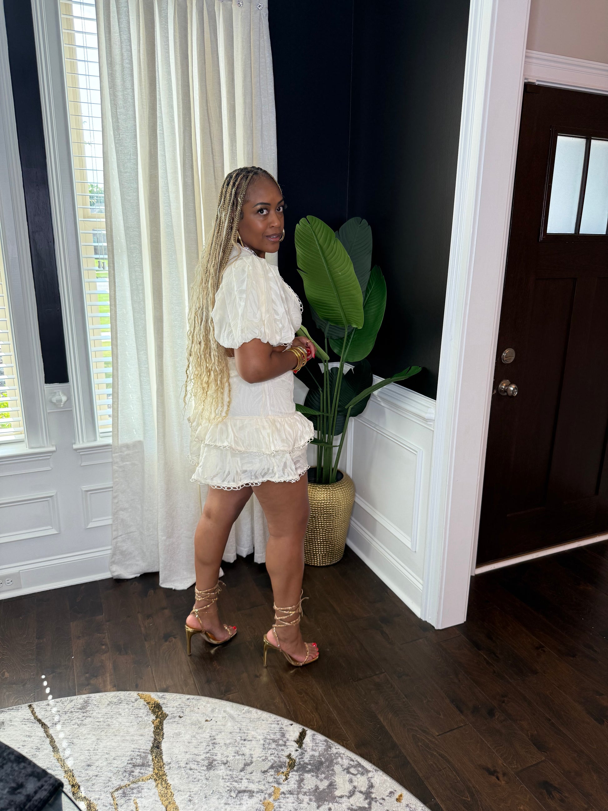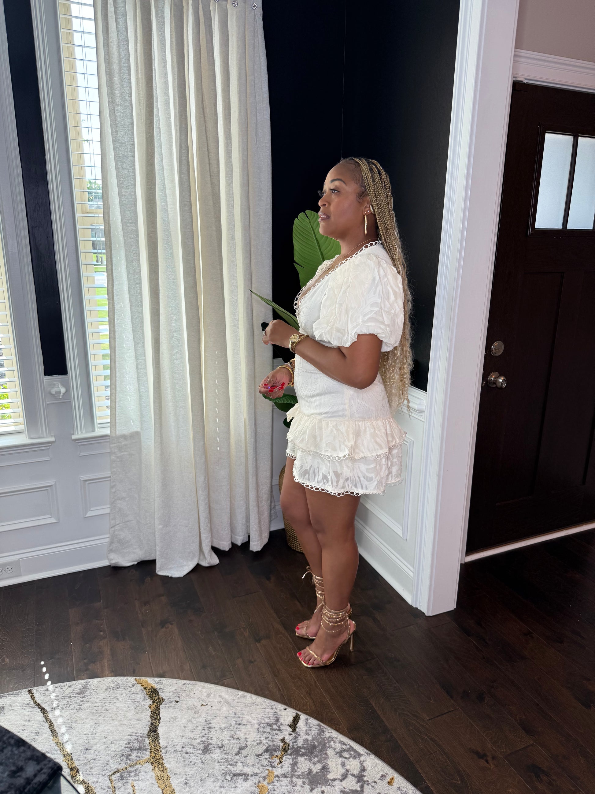Turn heads with our vibrant Orange Lace Trim Puff Sleeve Romper. This eye-catching piece features a bold, intricate textured pattern, perfect for making a statement. The deep V-neckline and strategically placed cutouts add a hint of allure, while the delicate lace trim enhances its feminine charm. The puff sleeves and tiered ruffle shorts create a playful and flirty silhouette, making it ideal for both casual and dressier occasions.