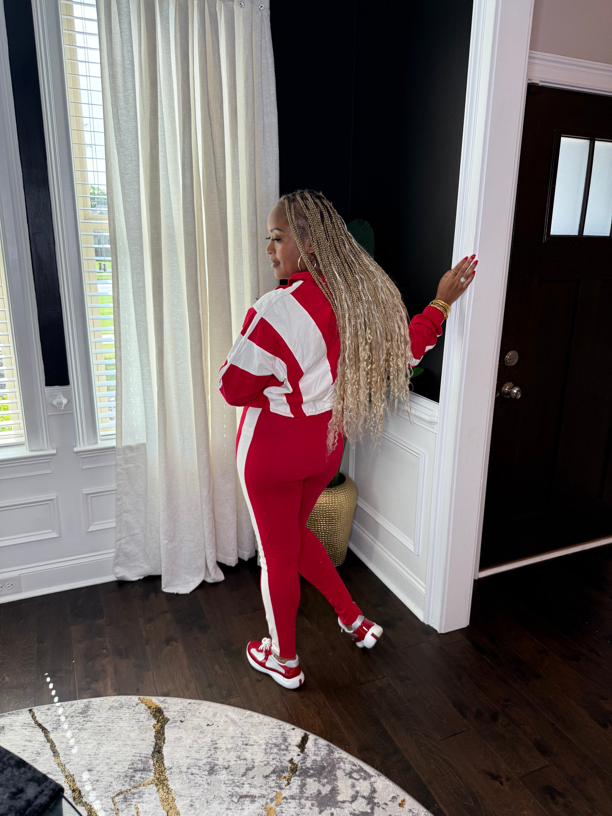 Power Play Colorblock Zip-Up Set – Red/Cream