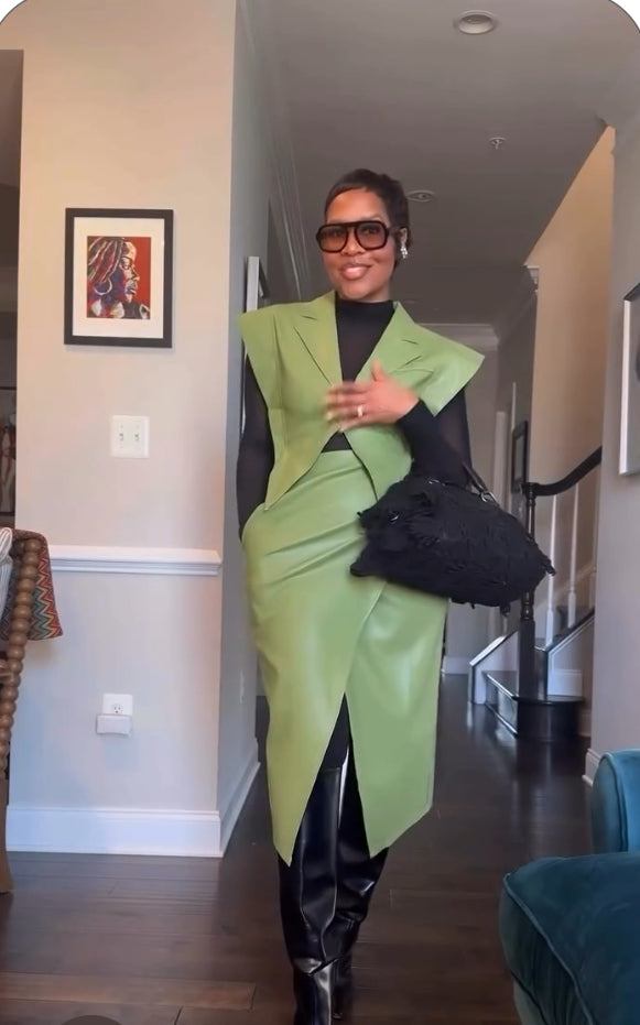 Elevate your fashion game with our newest arrival! This coordinating leather crop jacket and high waisted skirt combo is the perfect blend of edgy and chic. Crafted from a unique blend of 95% polyester and 5% spandex, this set not only boasts style but also comfort. The leather crop jacket features a single button closure, and the high waisted skirt boasts a secure zipper and button fly. Designed to fit true to size, this set is suitable for all body types. So whether you're off to a party or a night out with your pals, this set will have you standing out in a crowd. Snag this must-have addition for your wardrobe from Bella Noire before it's too late!