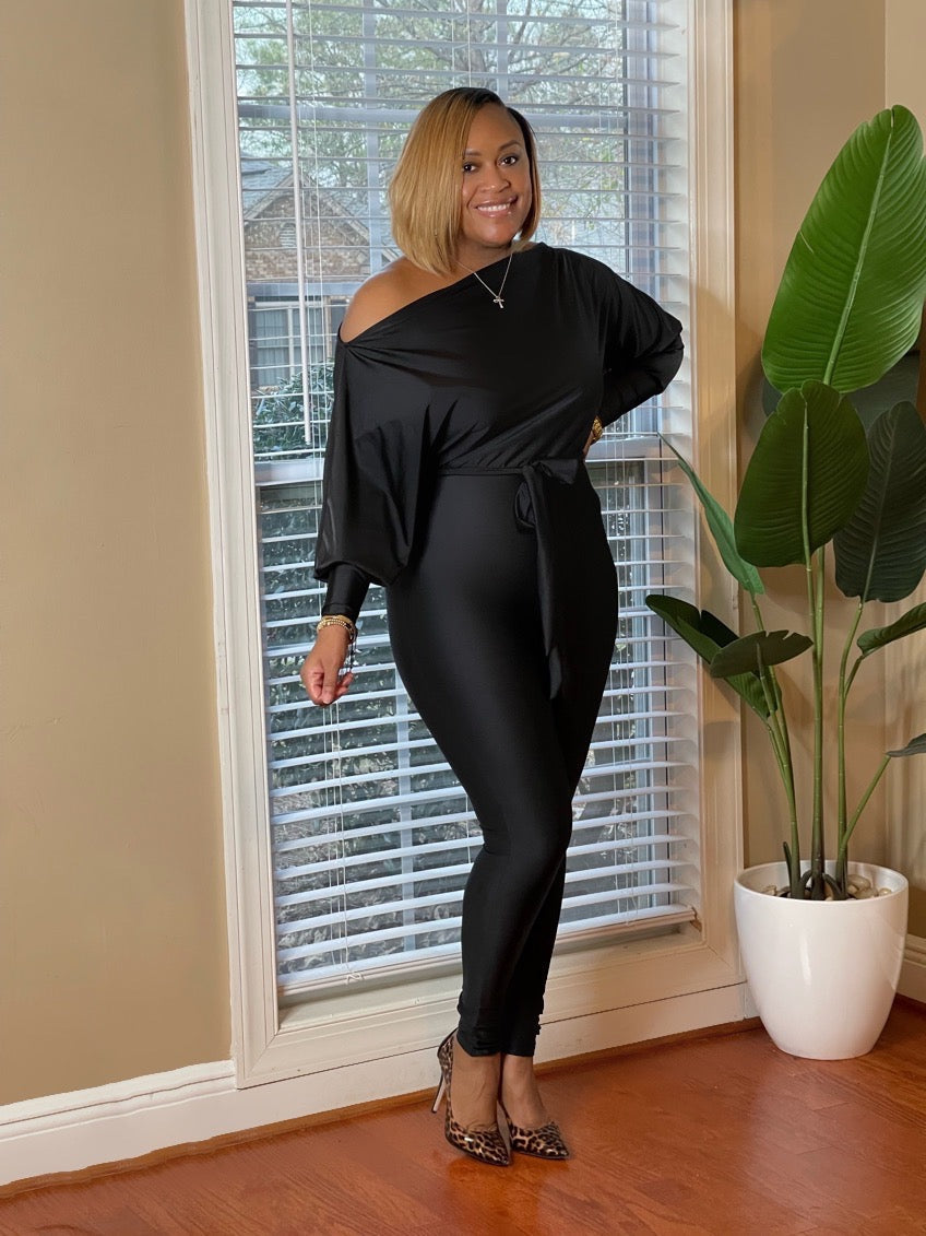 Faites tourner les têtes avec cette superbe combinaison à épaules dénudées avec une ceinture à nouer. Elle est très extensible et comporte des manches chauve-souris, s'ajuste aux épaules. Taille normalement. Matière polyspandex. Convient aux grandes filles. C'est un véritable incontournable pour la garde-robe de toute fashionista ! Associez-la à des talons et à une jolie pochette pour une tenue parfaite pour un rendez-vous galant !