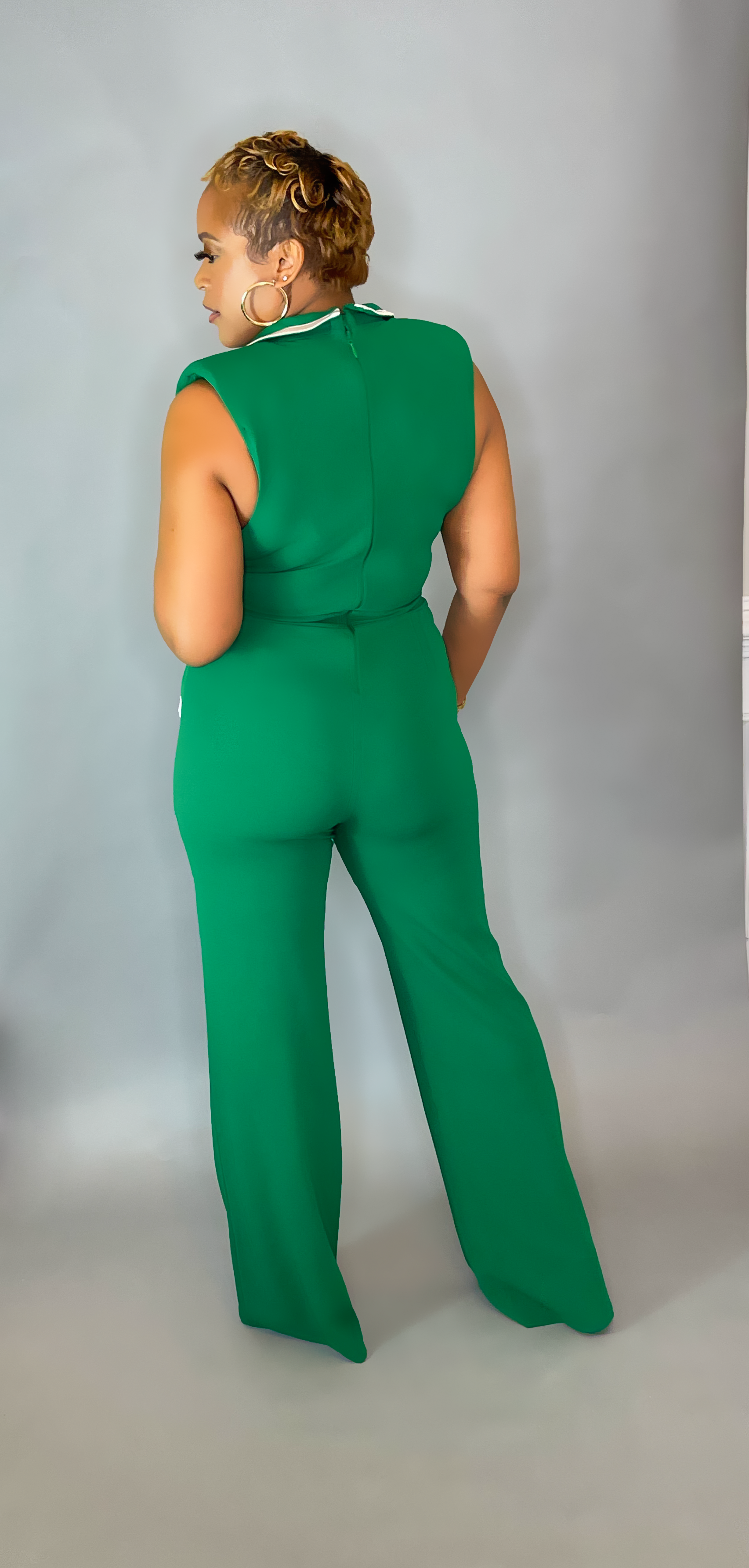 Green Sleeveless Wrap Jumpsuit