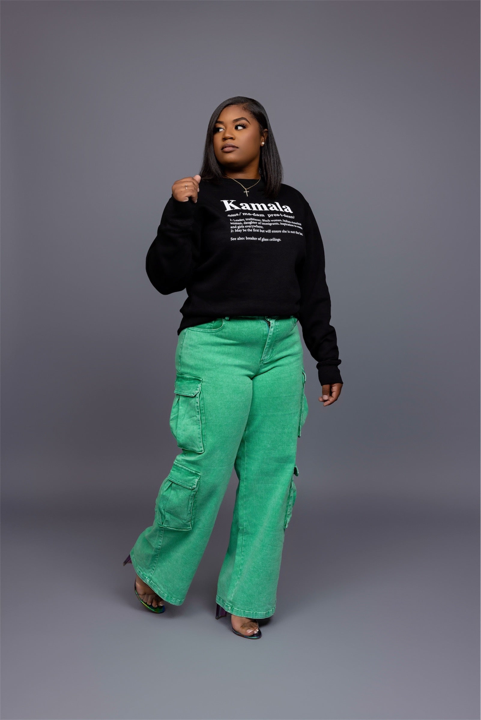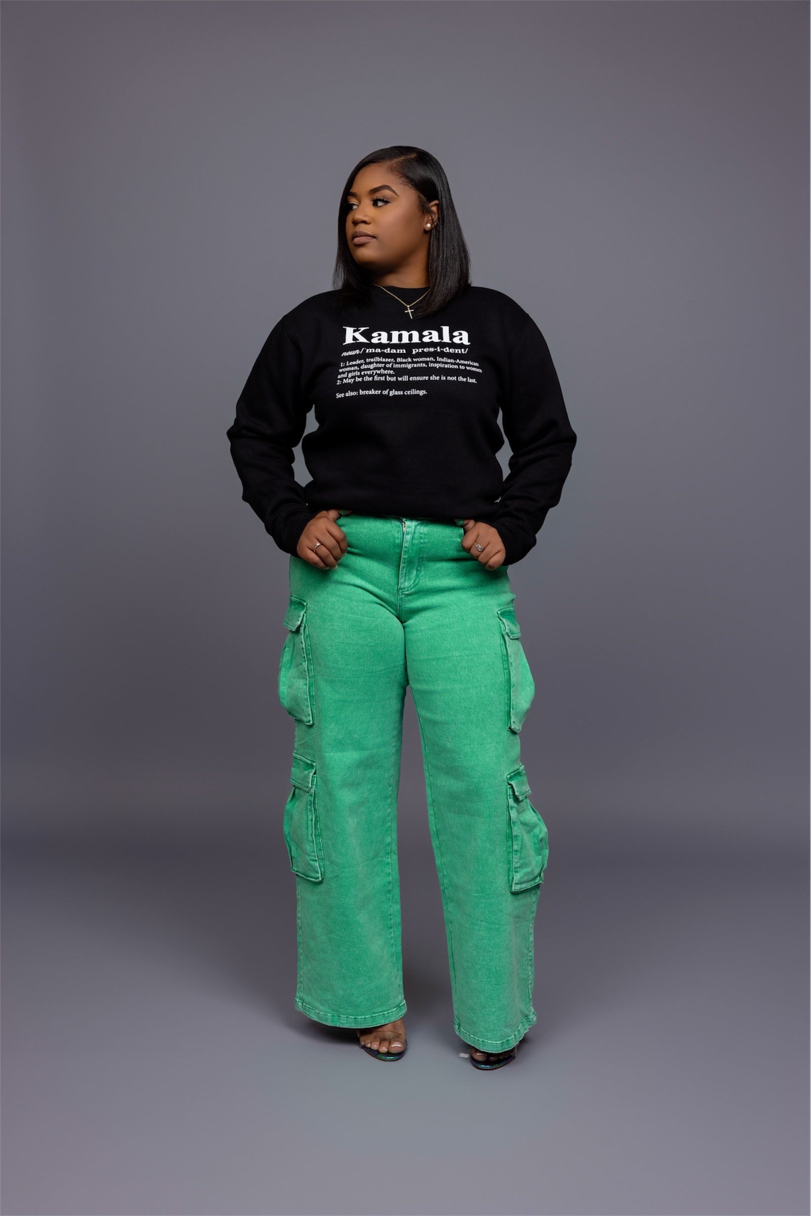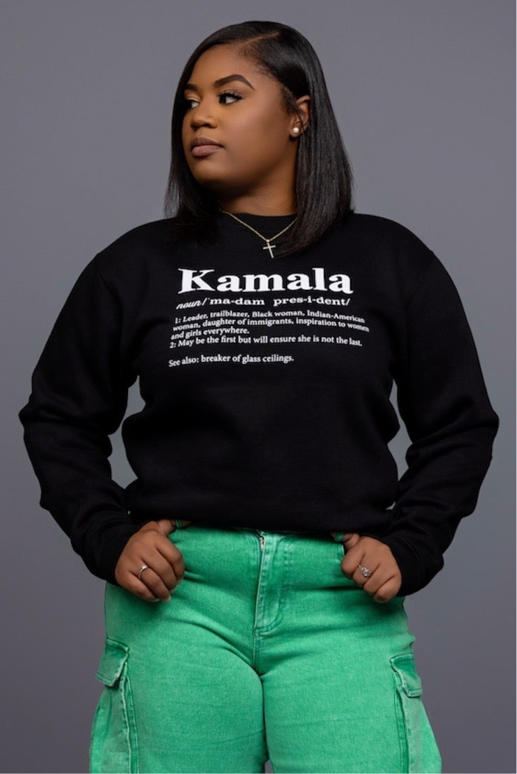 Premium sweatshirt featuring a ribbed neckline and painted Madam President design. Crafted of premium materials making this sweatshirt the timeless staple of your next outfit. Dress it up or down. Pair it with your favorite leggings or jeans. This is history in the making!